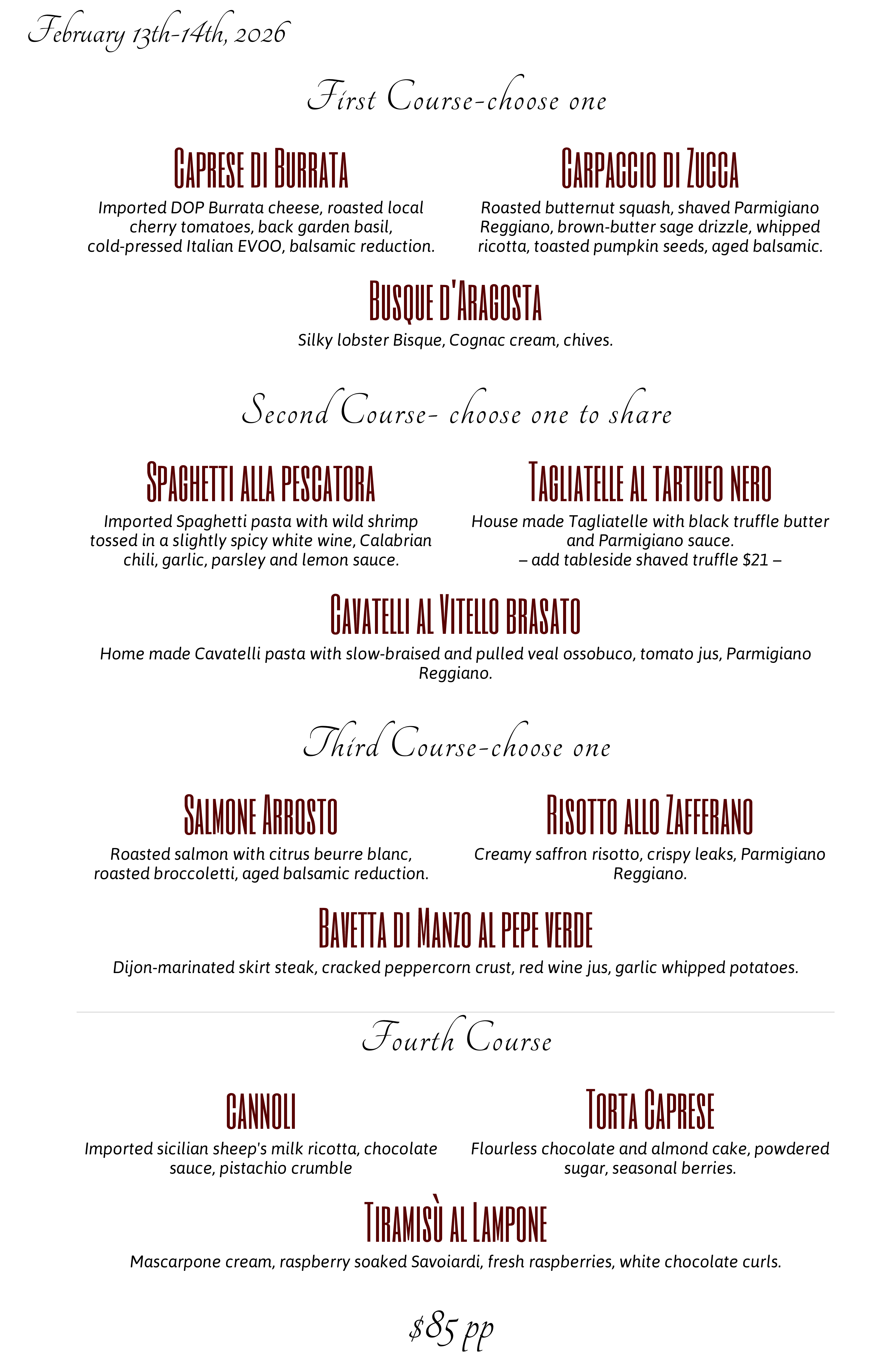 Incredibly delicious homemade Italian dishes and impeccable service in a charming atmosphere. Definitely a winning dining experience.